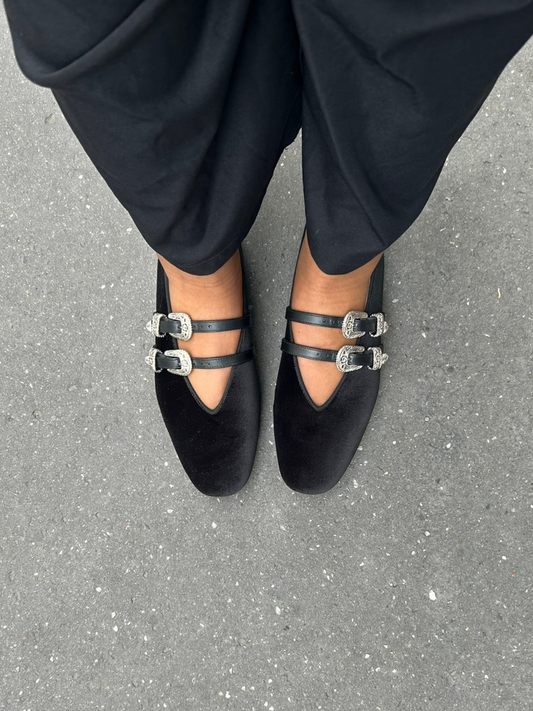 BALLERINES CLAUDIA EN VELOURS - NOIR
