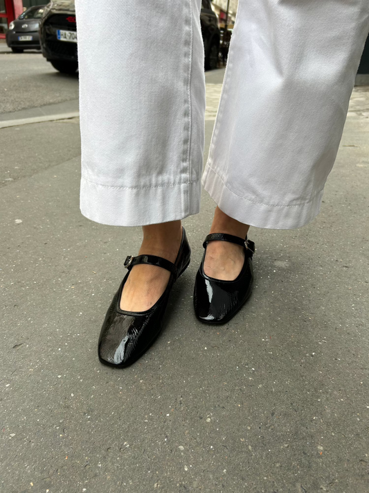 BALLERINES MARY JANE EN CUIR VERNI - NOIR