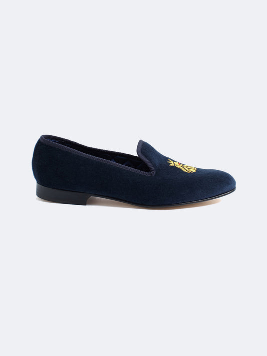 PANTOUFLES ALBERT EN VELOURS - MARINE