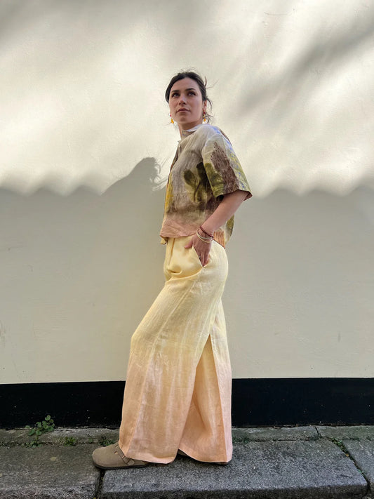 PANTALON DE DÉTENTE EN LIN - JAUNE/ORANGE