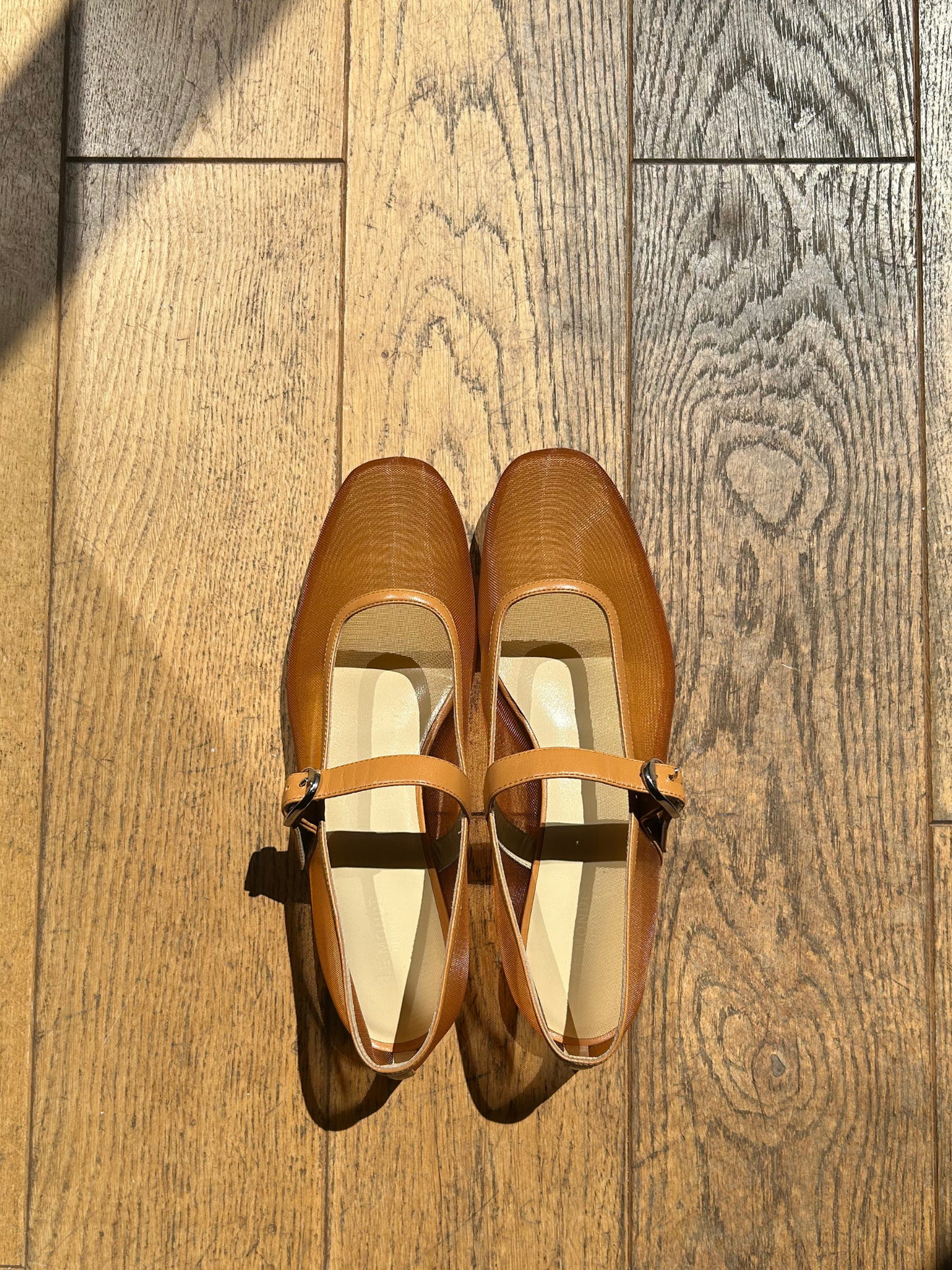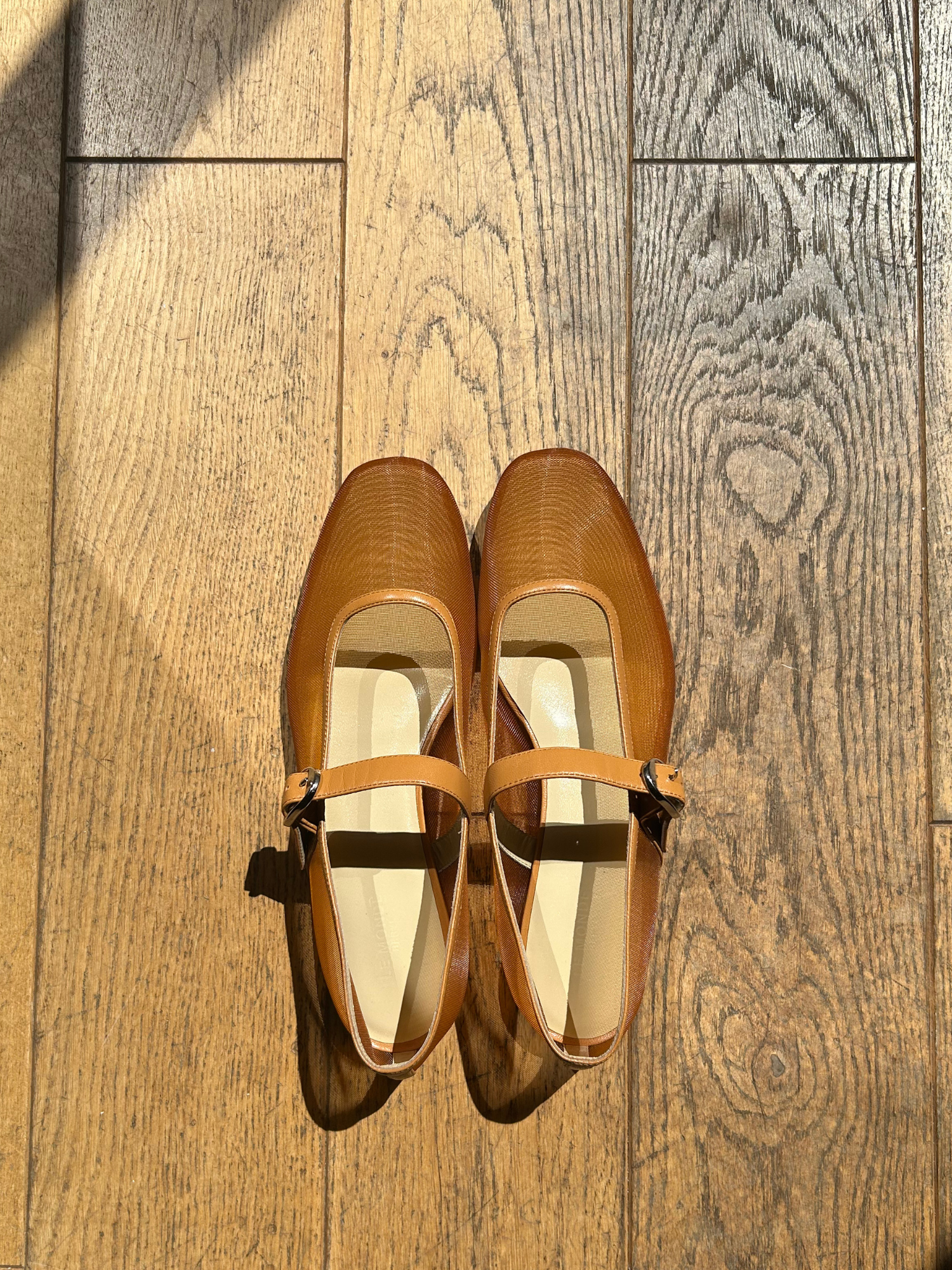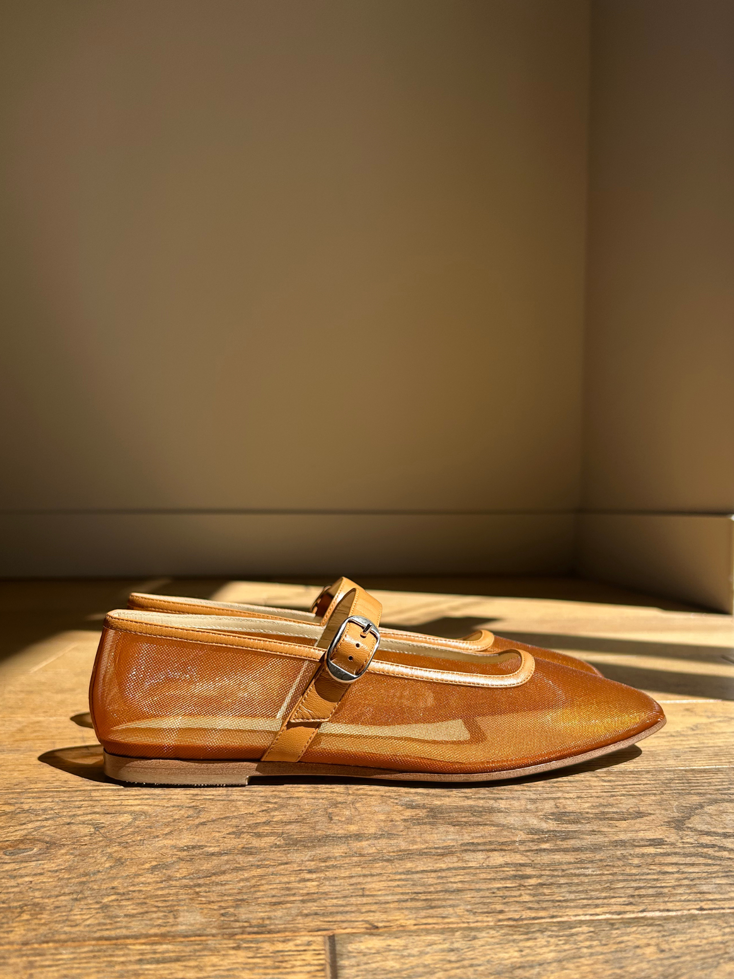 BALLERINES MARY JANE EN MAILLE - COGNAC