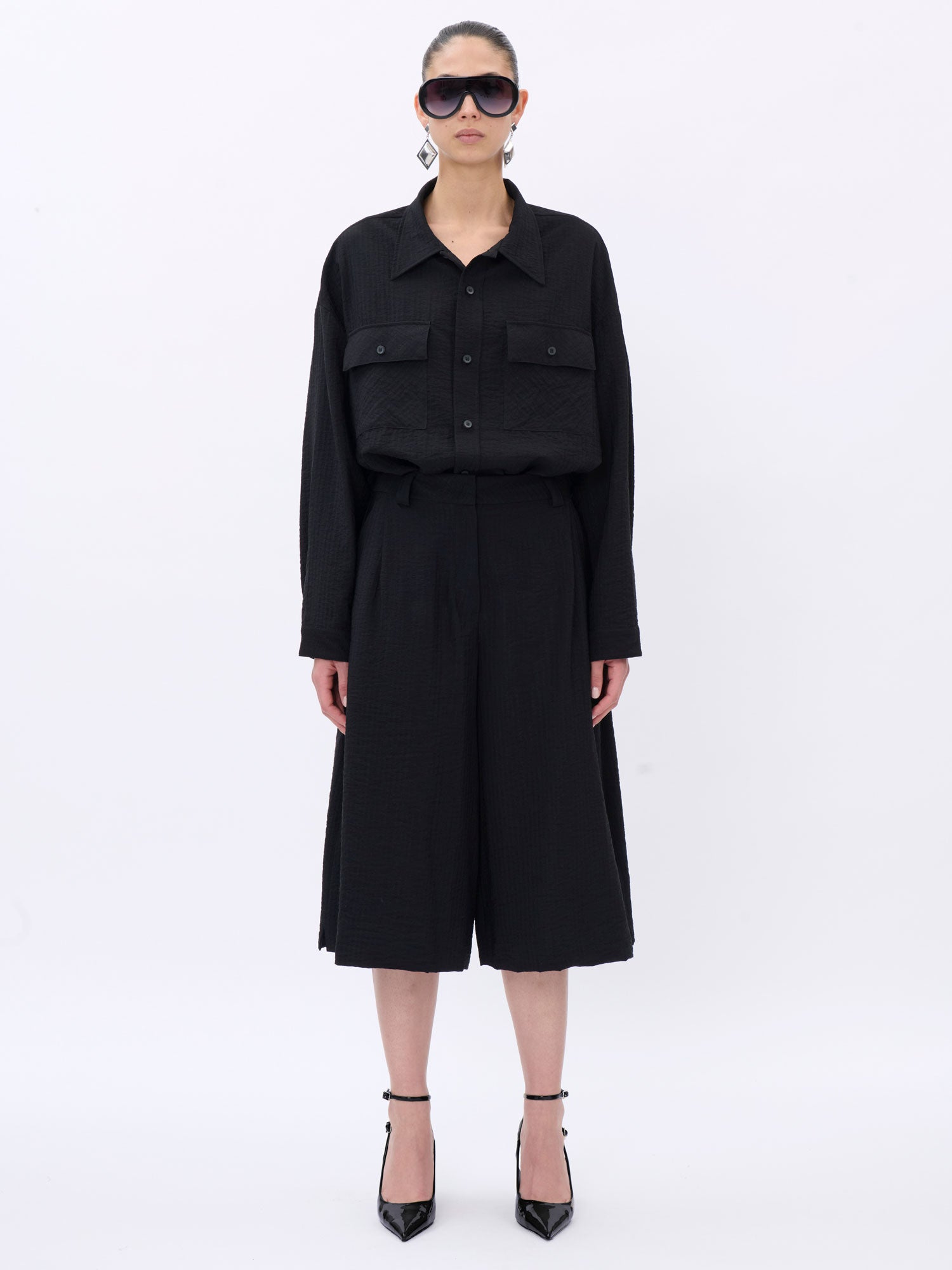 La chemise Daria noire, oversized et signée The Latest, allie modernité et sophistication. Ses deux poches frontales et sa coupe ample apportent à la fois fonctionnalité et style contemporain, pour une allure chic et affirmée.