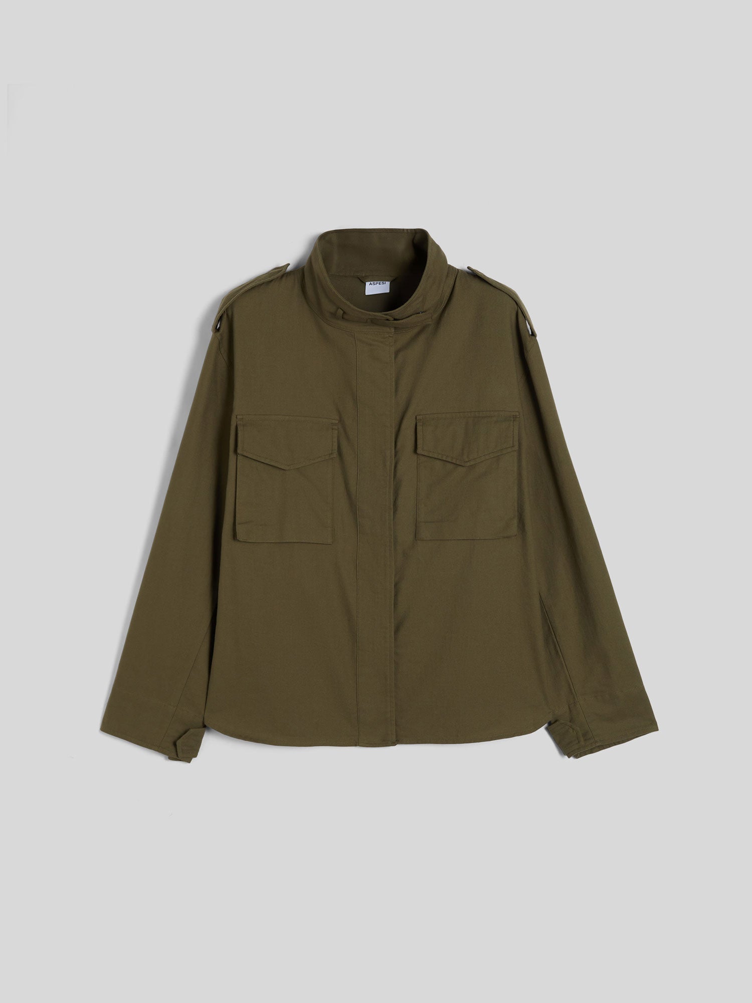 Une chemise raffinée d’inspiration militaire, confectionnée en serge de coton brossé douce. Elle se distingue par sa fermeture pression cachée, ses poches poitrine à rabat et son col haut structuré, alliant utilité et sophistication. Les épaulettes et les détails de poignets à brandebourgs complètent ce design intemporel et discret.