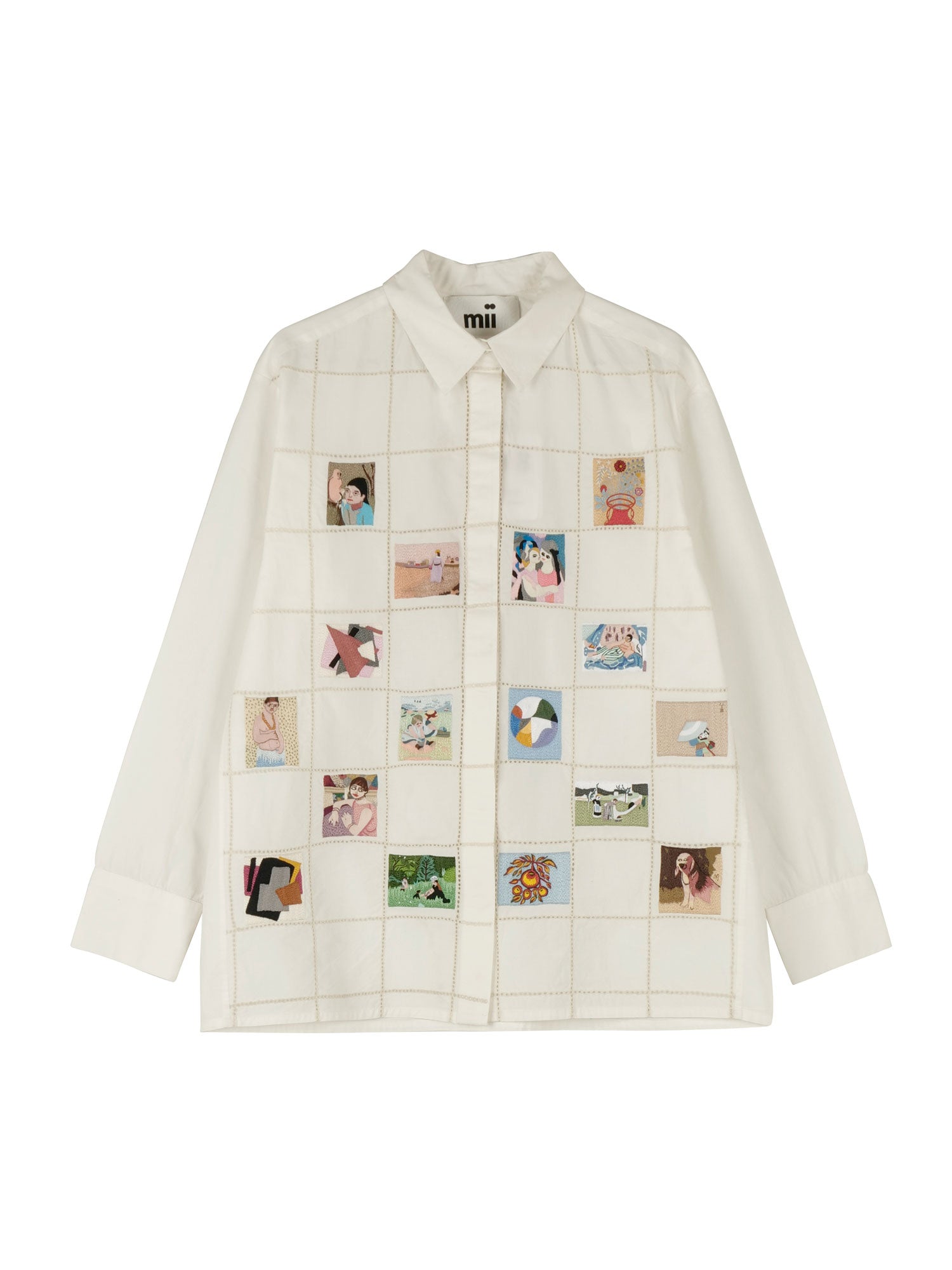 La chemise Milou est une pièce exceptionnelle qui rend hommage aux artistes emblématiques en transformant leurs chefs-d’œuvre en broderies fines et élaborées. Chaque œuvre est encadrée par une délicate broderie anglaise, chaque détail étant minutieusement réalisé à la main. La confection d’une seule chemise nécessite 55 heures de travail, en faisant une véritable œuvre d’art à porter. Coupée dans une silhouette longue et masculine, la chemise Milou allie caractère et raffinement.